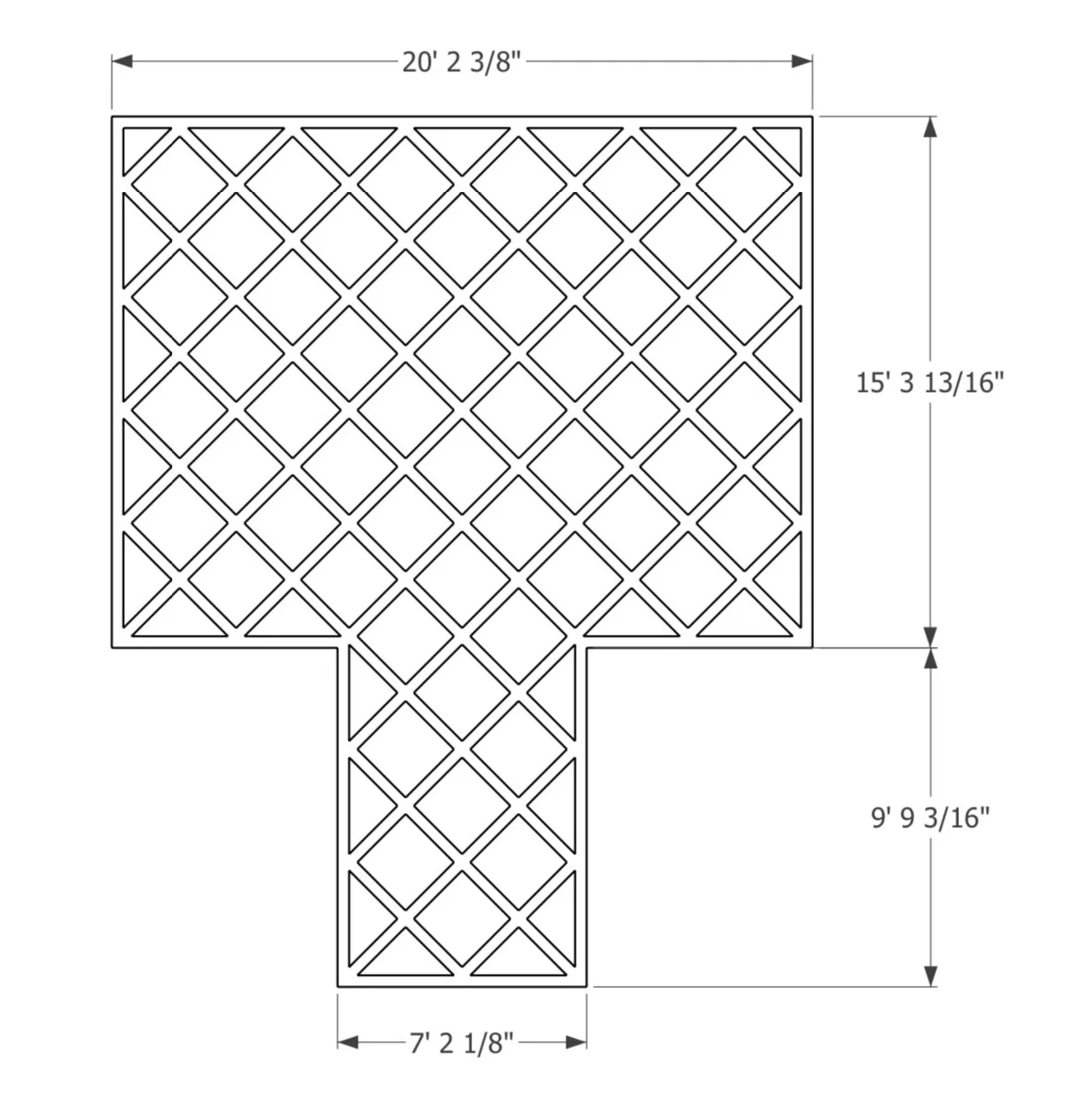 Enter Paver Turf! (https://www.paverturf.com) They make amazing pre-cut artificial turf and paver patio kits. You can buy them pre made with their measurements or get custom measurements. We got ours custom made and Gary was fantastic to work with. Here is the initial drawing he sent us.