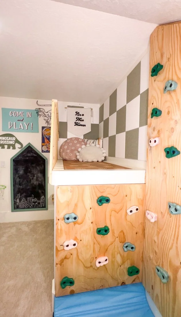 I painted the frame with the same color green that I used on some of the climbing holds on another wall in the play room (Matte Pale Sage-Krlyon Fusion from Loweβs). I had to buy a hanging kit from Lowe's, but that was the only thing I had to purchase!