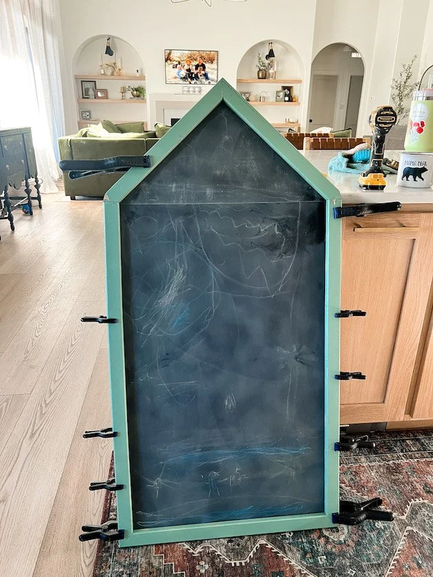 I recently made a DIY magnetic chalkboard in the shape of a house for my kids' playroom. The best part? I used only items I already had at home! Here's how I did it: